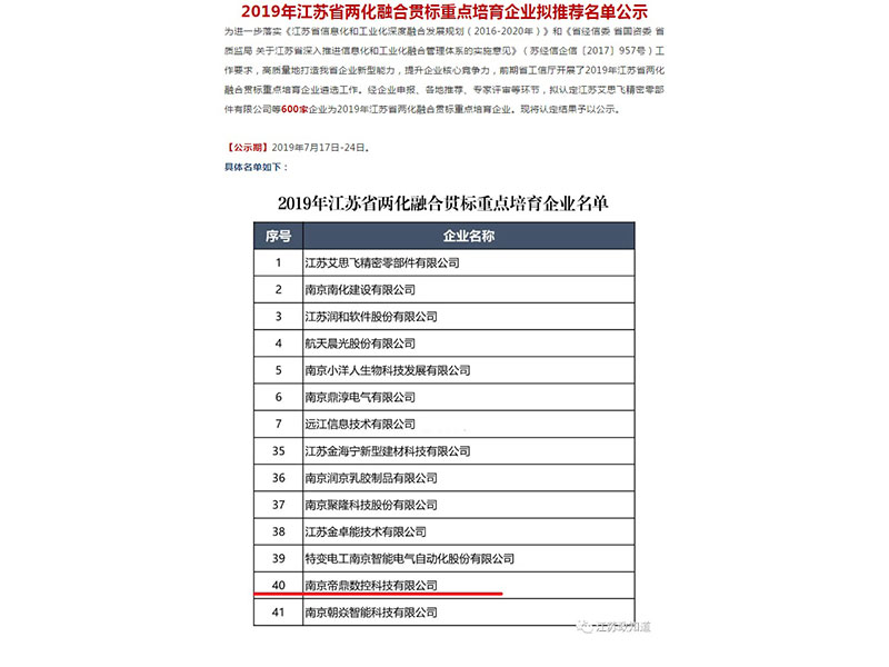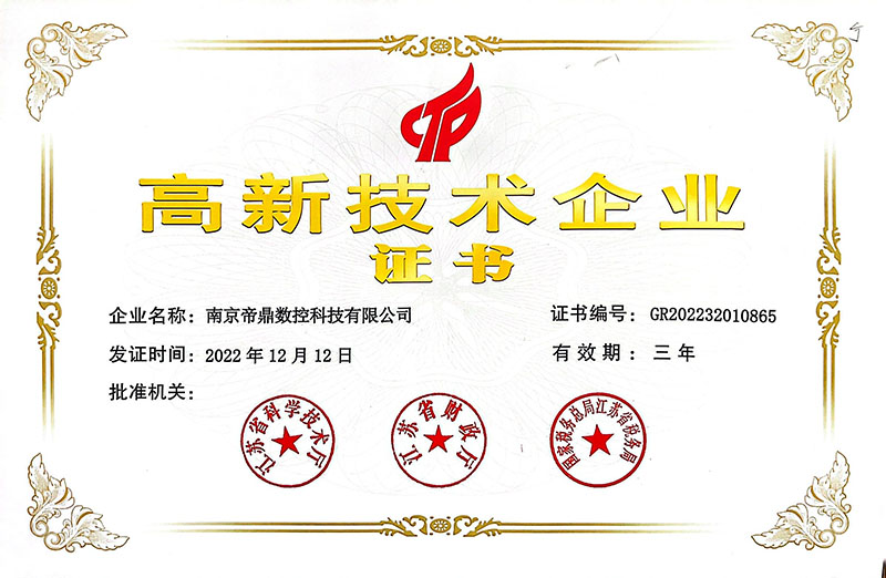 南京帝鼎數(shù)控科技有限公司創(chuàng)始于2001年,是一家設 備制造企業(yè),主要生產(chǎn)數(shù)控木工加工中心、門板自動化 生產(chǎn)線、柜體自動化貼標開料生產(chǎn)線等,供應給家具廠 家用于家具生產(chǎn)。南京帝鼎數(shù)控科技有限公司目前已取 得國家高新技術企業(yè)、江蘇省民營科技企業(yè)、江蘇省信 用貫標企業(yè)、江蘇省兩化融合貫標重點培育企業(yè)、南京 市瞪羚企業(yè)、南京市“專精特新”企業(yè)等榮譽認定。:未來,南京帝鼎 將以超越“德國工業(yè)4.0”為目標,以領航中國木工機 械為己任,為全國乃至全世界家居制造商提供優(yōu)質(zhì)的設 備與服務!