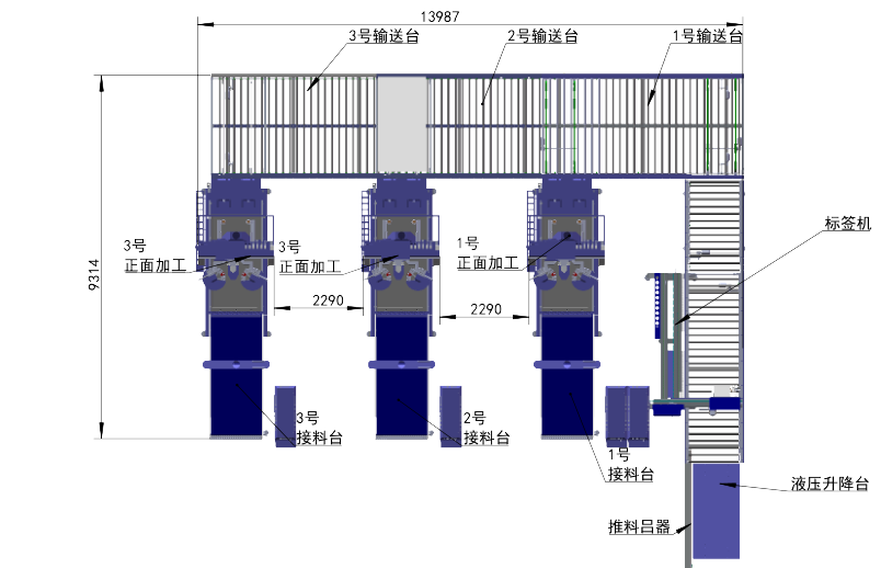 公司的二托六柜體生產(chǎn)線,包括板材供料系統(tǒng)、板面加工系統(tǒng)、板材輸送系統(tǒng)、板材加工系統(tǒng)、成品下料系統(tǒng)。該生產(chǎn)線兩臺(tái)通過式貼標(biāo)機(jī)可服務(wù)六臺(tái)加工中心開料,龍門式碼垛上料對(duì)板材無損傷,也增加了材料庫課存放的板材數(shù)量。所有設(shè)備不間斷加工,最大化提高生產(chǎn)效率,且僅需一人操作。一天可加工約1000張大板!