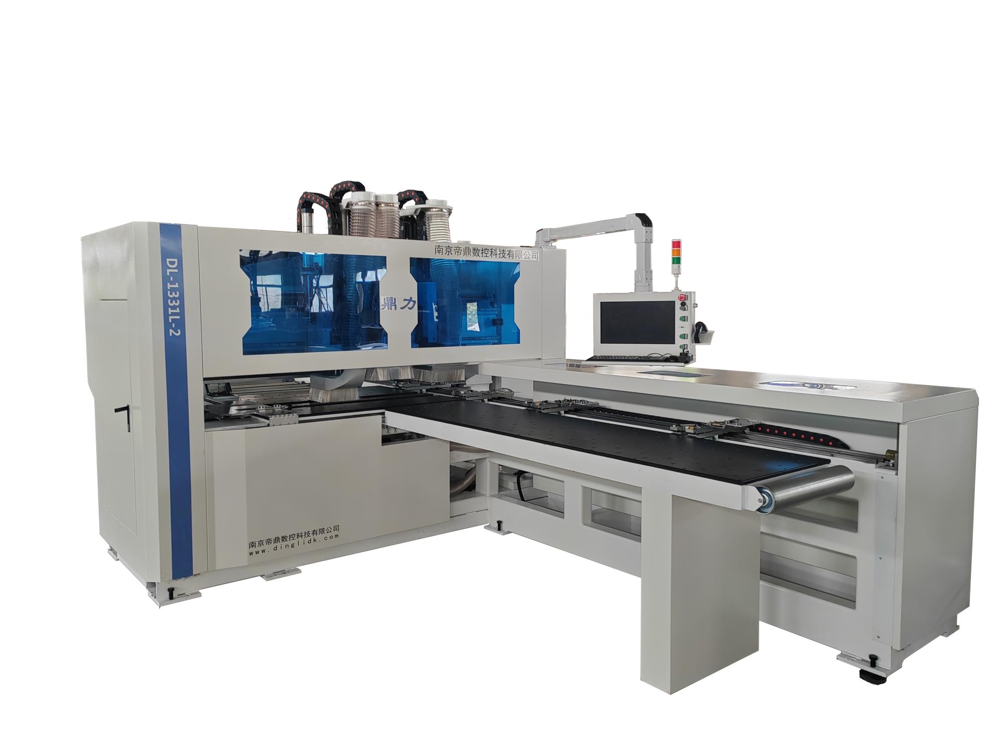 本設(shè)備采 用三抓手送料機(jī)構(gòu),可減少機(jī)械手更換次數(shù),避免加工較長工件的累計(jì)誤差,配合超長X軸機(jī)手軌道,可大大改良加工精度,從而提高加工效率。上、下鉆盒由19個(gè)垂直,8個(gè)水平的鉆軸,3個(gè)高速主軸組成,一次完成6面加工及拉槽、銑型,易于操作、使用靈活,不受人工干預(yù)的操作平臺工具。